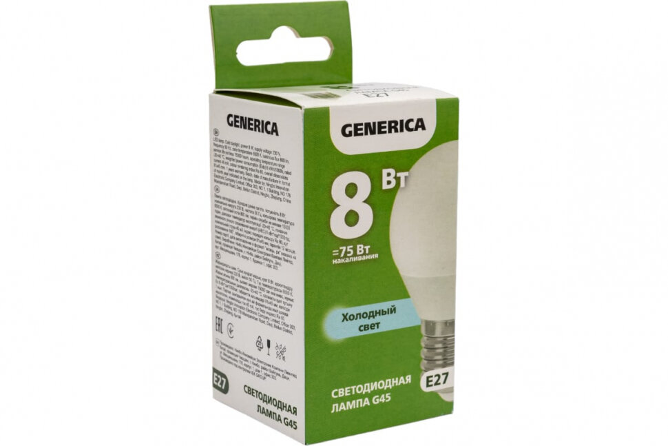 Ниже Вы можете прочитать отзывы на Светодиодные лампы GENERICA Лампа светодиодная G45 8Вт шар 6500К E27 230В GENERICA LL-G45-08-230-65-E27-G, ознакомится с подробными характеристиками, посмотреть интересные обзоры и фотографии на Светодиодные лампы GENERICA Лампа светодиодная G45 8Вт шар 6500К E27 230В GENERICA LL-G45-08-230-65-E27-G.