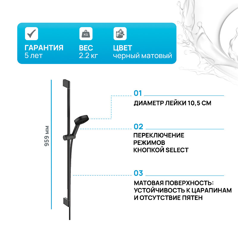 Душевой набор Hansgrohe Pulsify Select 24170670 матовый черный .