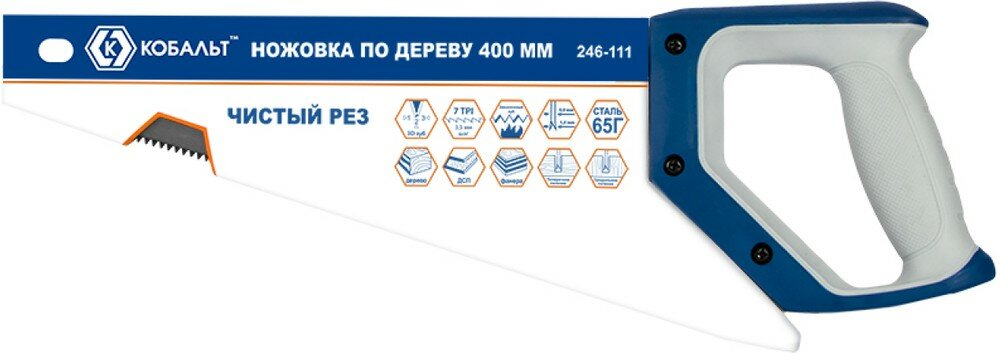 Ножовка по дереву 400 мм (7 TPI, двухкомпонентная ручка) кобальт 246-111