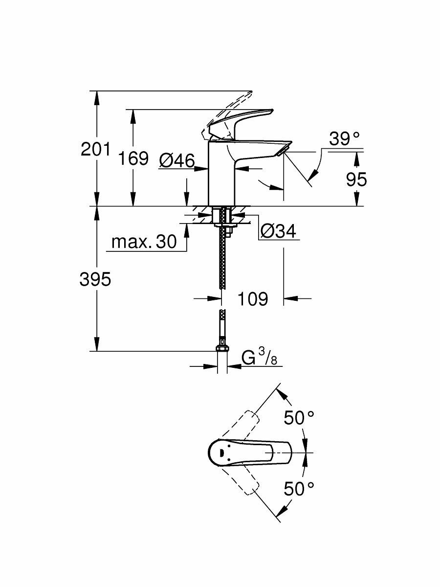 Смеситель для раковины без донного клапана Grohe Eurosmart 32467003