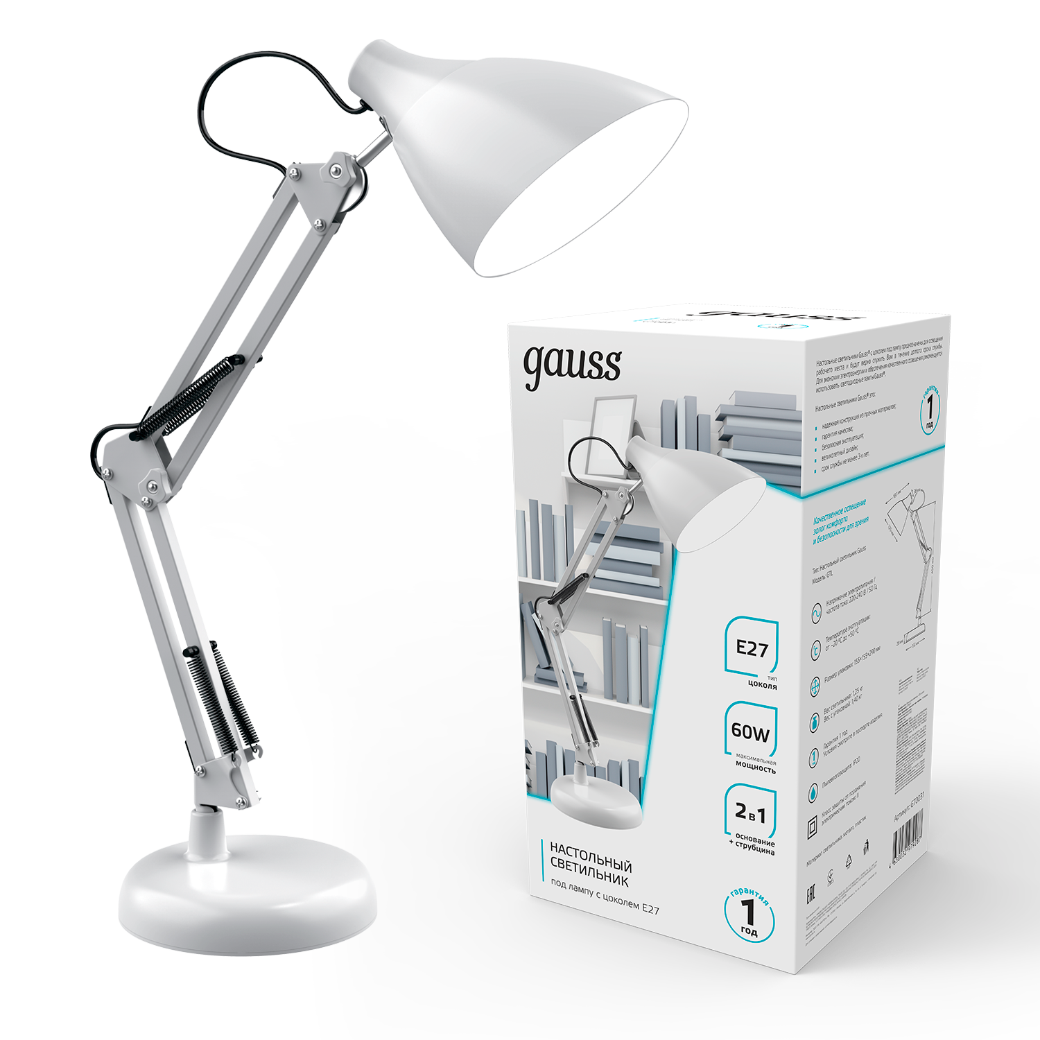 Настольная лампа Gauss GTL003 60W 220-240V E27 белый струбцина и основание 1/12