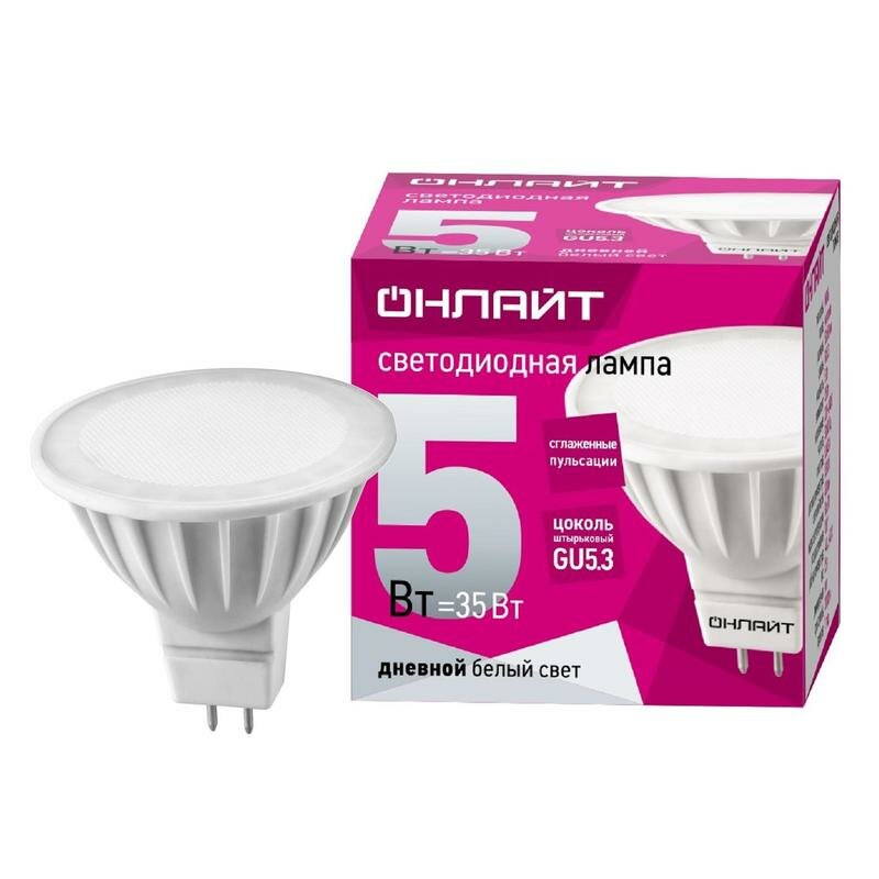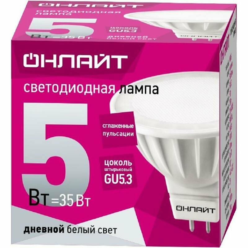Лампа светодиодная онлайт 61133, GU5.3, MR16, 5 Вт, 6500 К