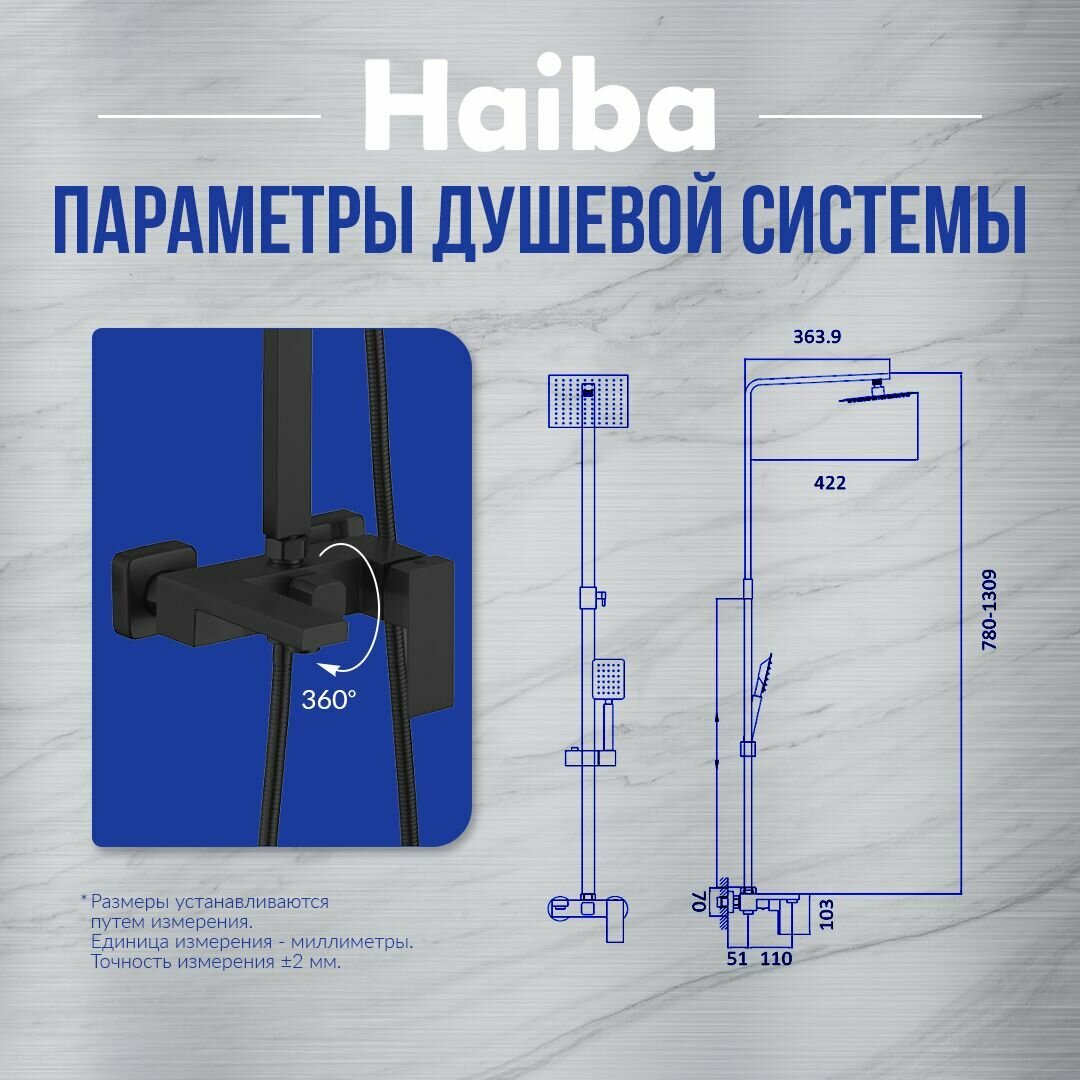 Душевая система Haiba HB24803-7 с верхним душем и ручной лейкой, черный