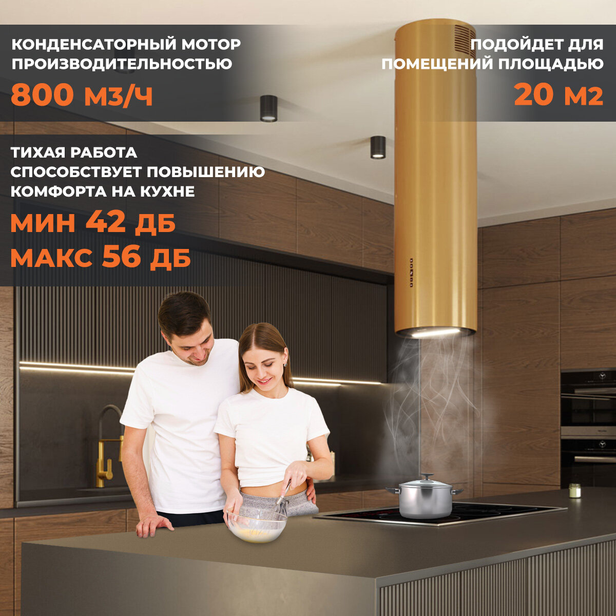 Кухонная вытяжка островная Konigin Pasio Gold/Black Glass 31