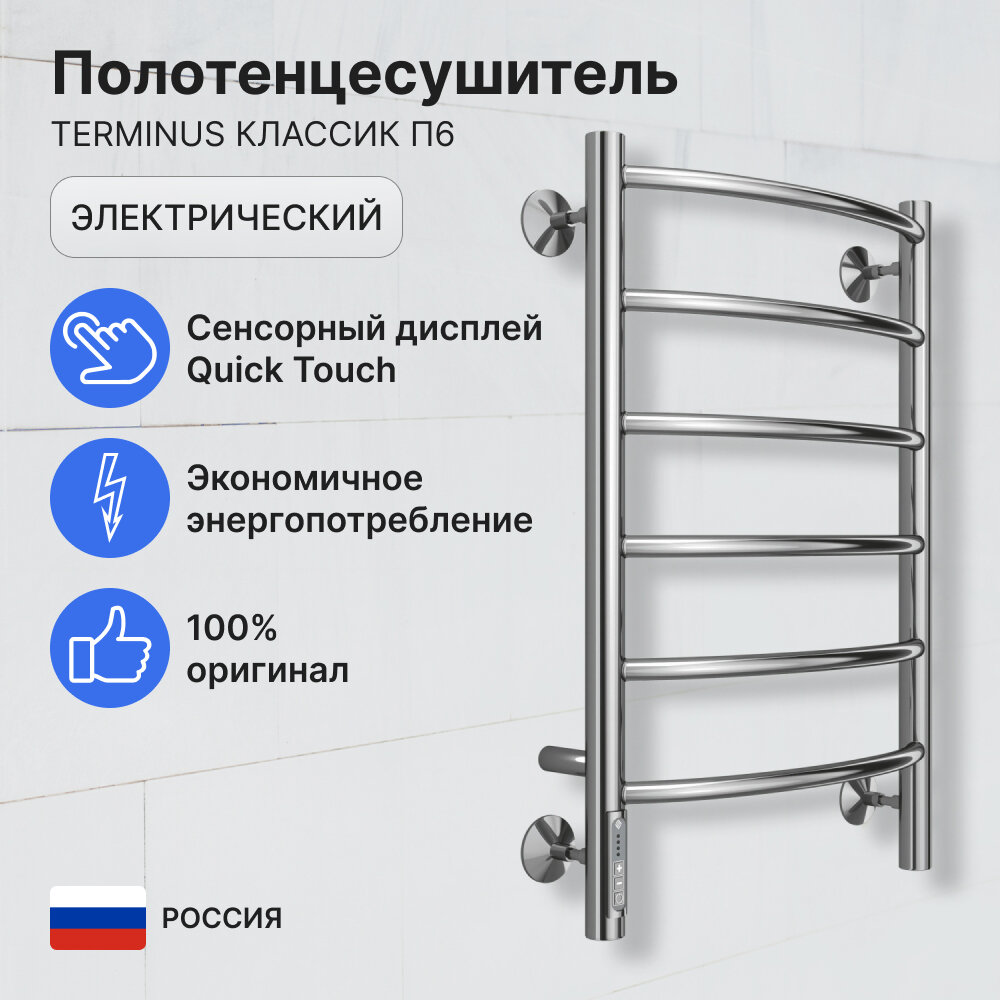 Полотенцесушитель электрический TERMINUS (Терминус) Классик П12 500х1000мм, с таймером, сенсорный диммер 5-ого поколения Quick Touch, 3 температурных режима, гарантия 5 лет