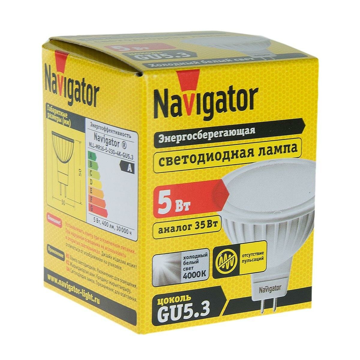 (15 шт.) Светодиодная лампочка Navigator MR16 5Вт 230В 4000K GU5.3
