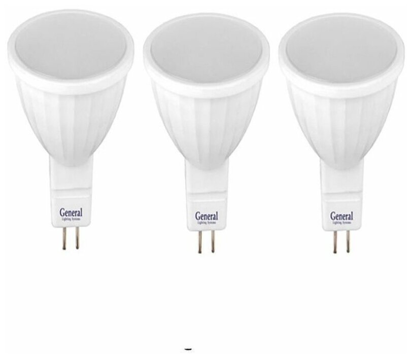 Лампочка светодиодная, General, Комплект из 3 шт., 7 Вт, Цоколь GU5.3, 3000К, Форма лампы Круг, MR16
