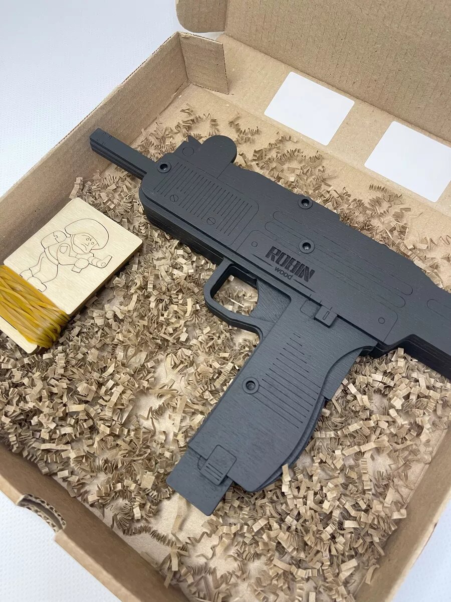 Пистолет-пулемет (автомат) «Узи», игрушка-резинкострел из дерева