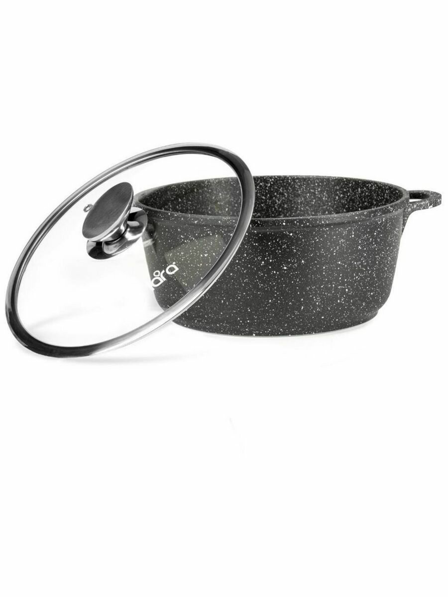 Кастрюля алюминий литой А/П 4,2Л мрамор RIO СТ/КР из жаропрочного стекла индукция LARA