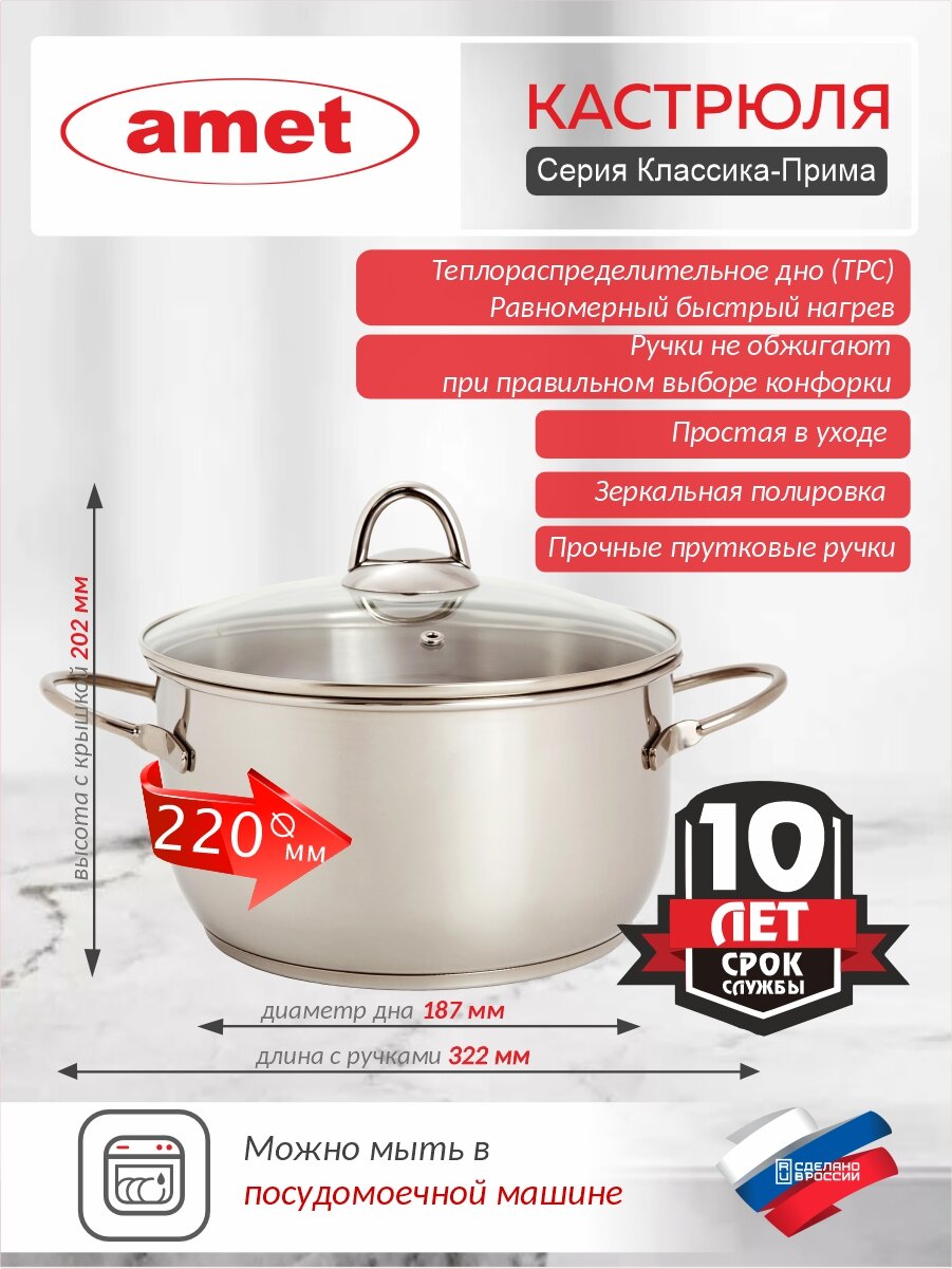 Кастрюля амет Классика-Прима 4 л, 220 мм с ТРС