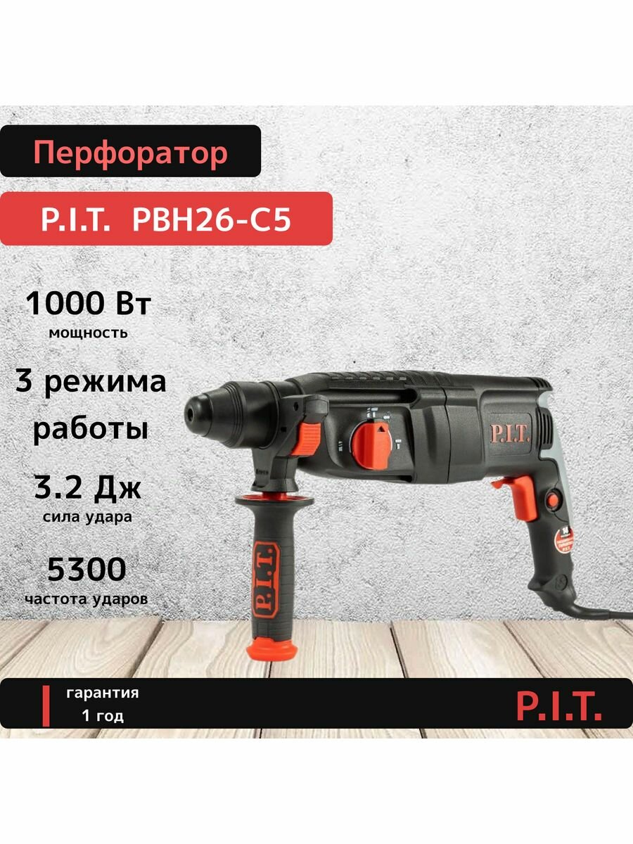 Перфоратор P.I.T PBH26-C5 (3 режима, 1000Вт, 3,2Дж, SDS+, 26мм, кейс)