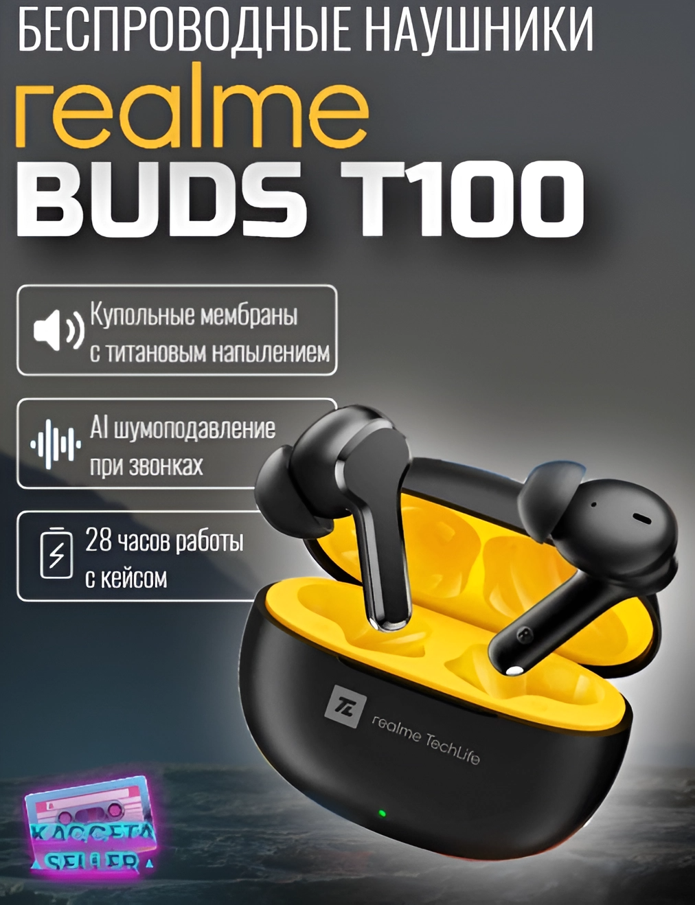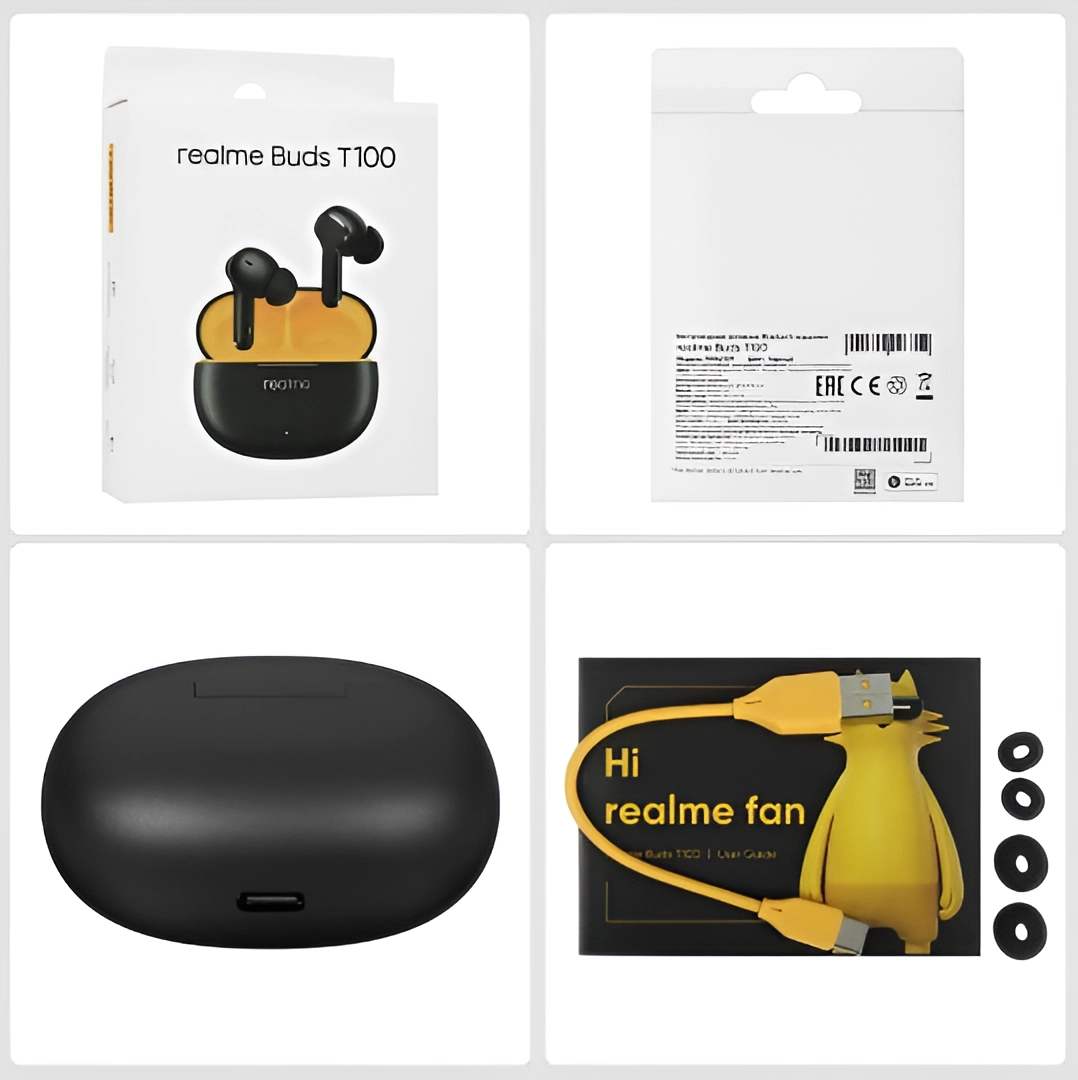 Беспроводные наушники realme Buds T100 черный, ANC, шумоподавление