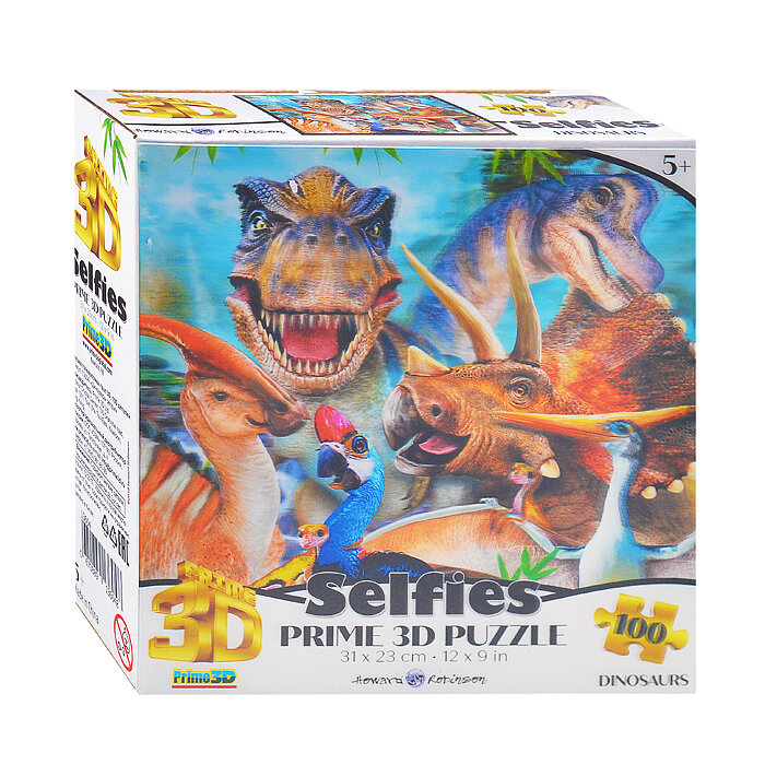 Prime 3D Пазл Super 3D 100 элемент. 13604 «Динозавры селфи» лиц. Howard Robinson