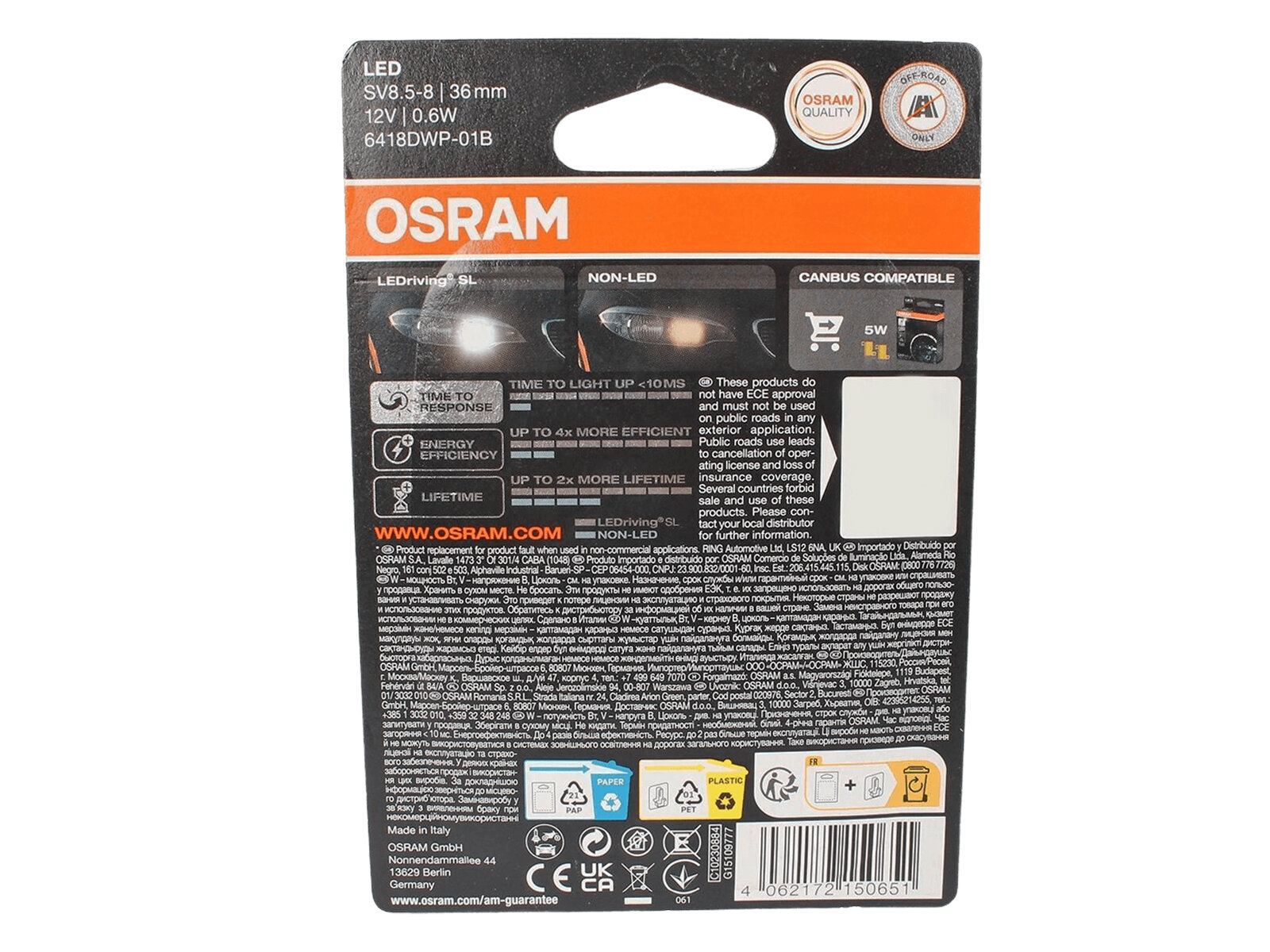 Ниже Вы можете прочитать отзывы на Лампа подсветки светодиодная C5W 12V "OSRAM" (36 мм) OSRAM 6418DWP-01B | цена за 1 шт, ознакомится с подробными характеристиками, посмотреть интересные обзоры и фотографии на Лампа подсветки светодиодная C5W 12V "OSRAM" (36 мм) OSRAM 6418DWP-01B | цена за 1 шт.