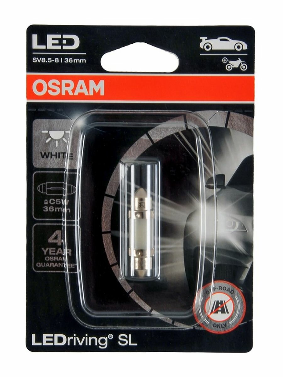 Ledriving Sl (3Поколение) 0,6W/12V C5w (36 Mm) Sv8.5-8 Bli1 Белый 6000K Osram арт. 6418DWP01B