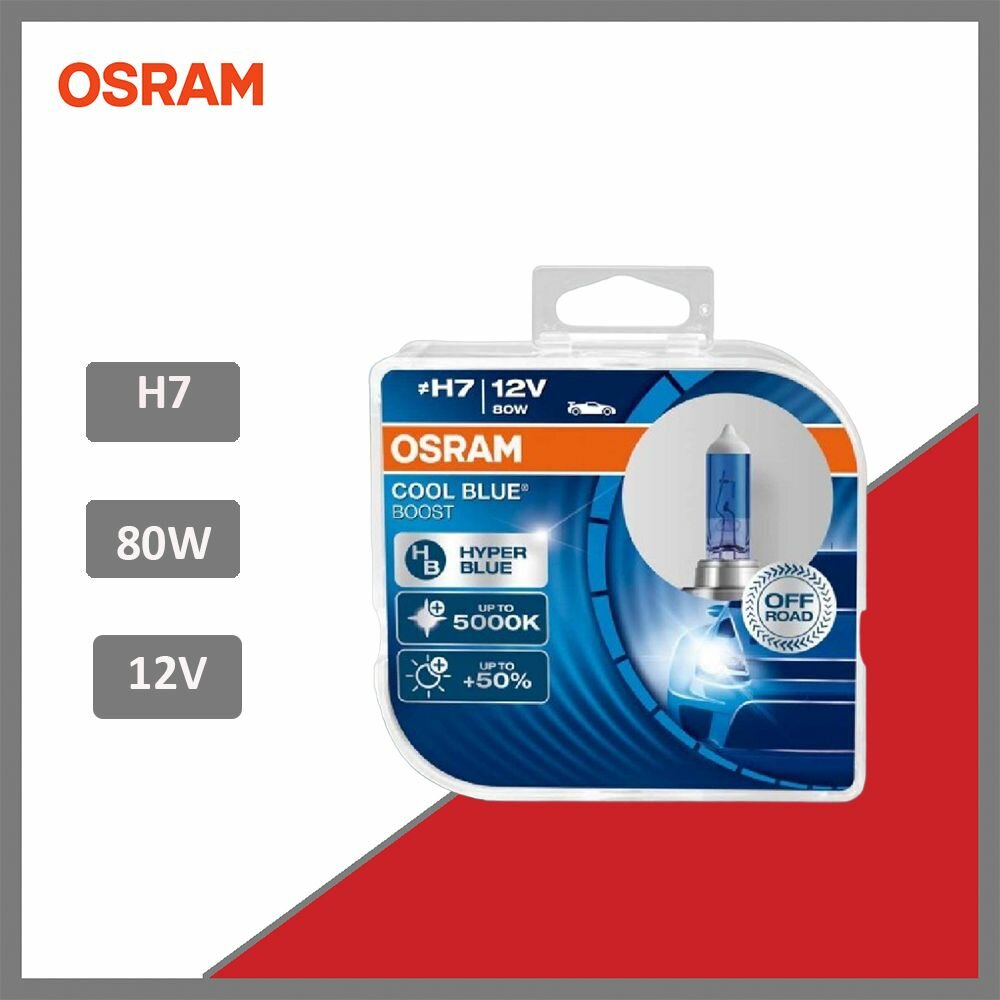 Лампа галогенная OSRAM H7 Cool Blue Boost +50% 12V 80W, 2шт.