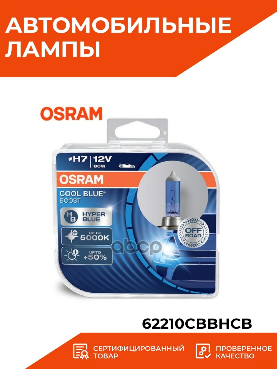 Лампа Галогенная H7 12v 80w "Osram" Cool Blue Boost (+50% Света) (2 Шт.) Osram арт. 62210CBBHCB
