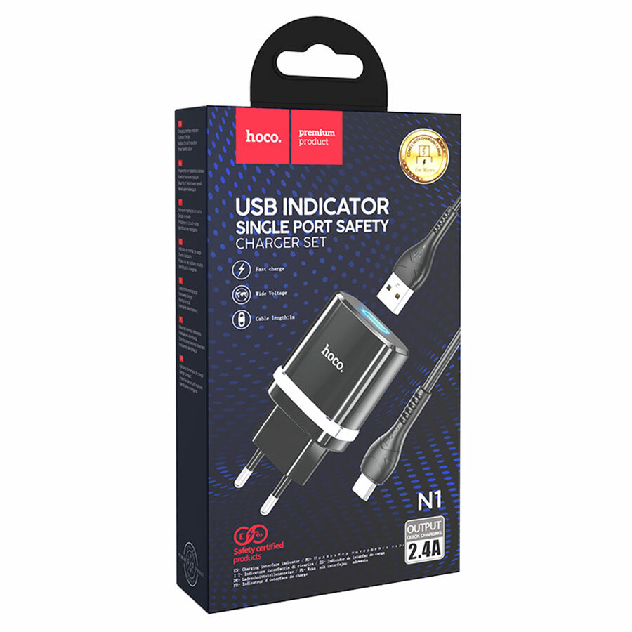 HOCO N1 Ardent single port charger set(for Micro)(EU) black