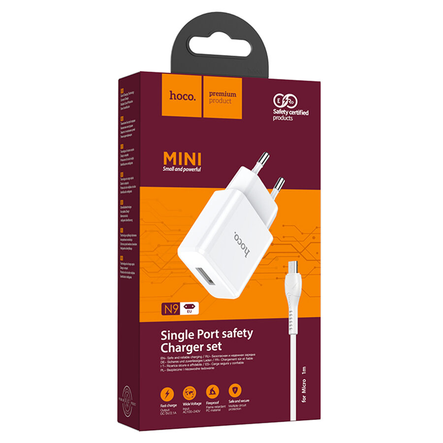 Сетевое зарядное устройство HOCO N9 Especial 1xUSB с Кабелем USB - Micro, 2.1A, 10W, белый