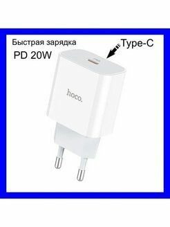 СЗУ, 1 PD 20W, 3.0 QC (C76A Plus), HOCO, Type-C to Lightning, белый
