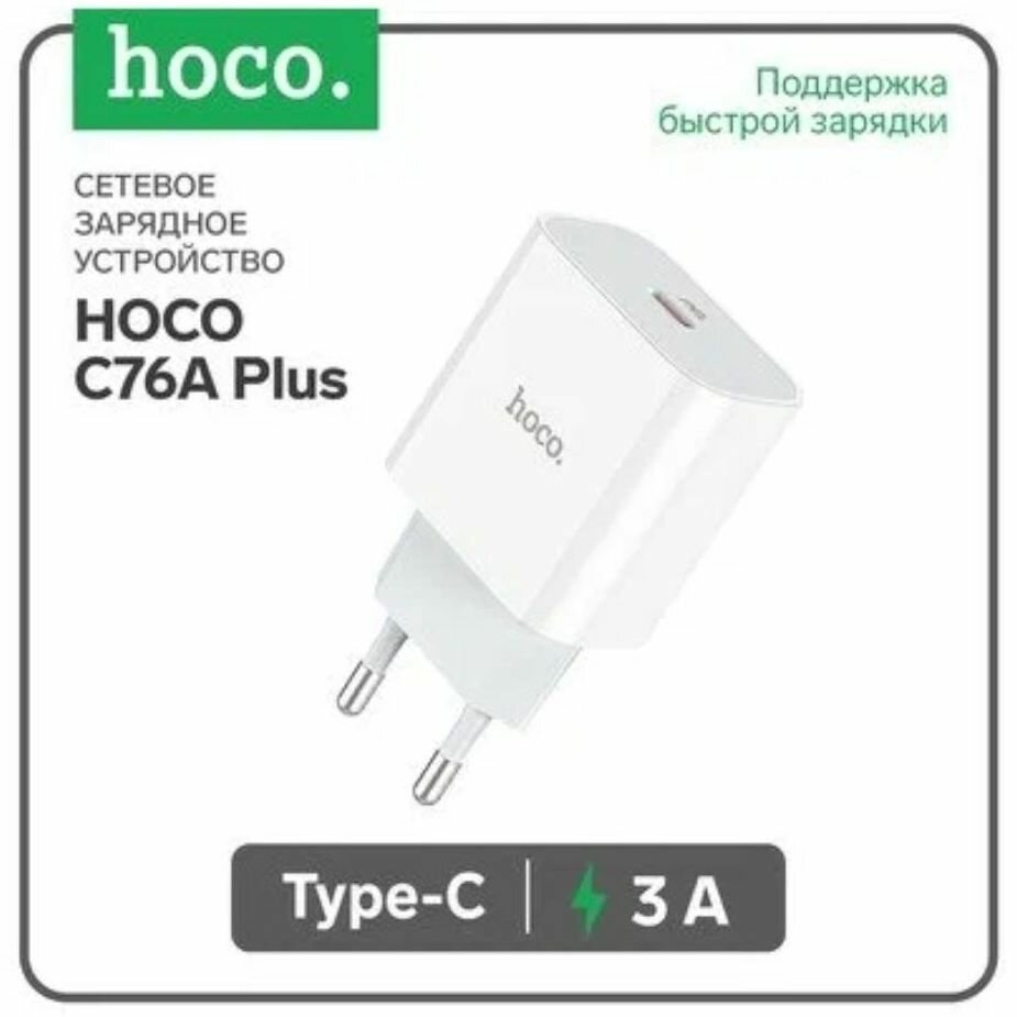 Сетевое зарядное устройство (СЗУ) Hoco C76A Plus (Type-C) + кабель Type-C-Lightning, 3 А, белый