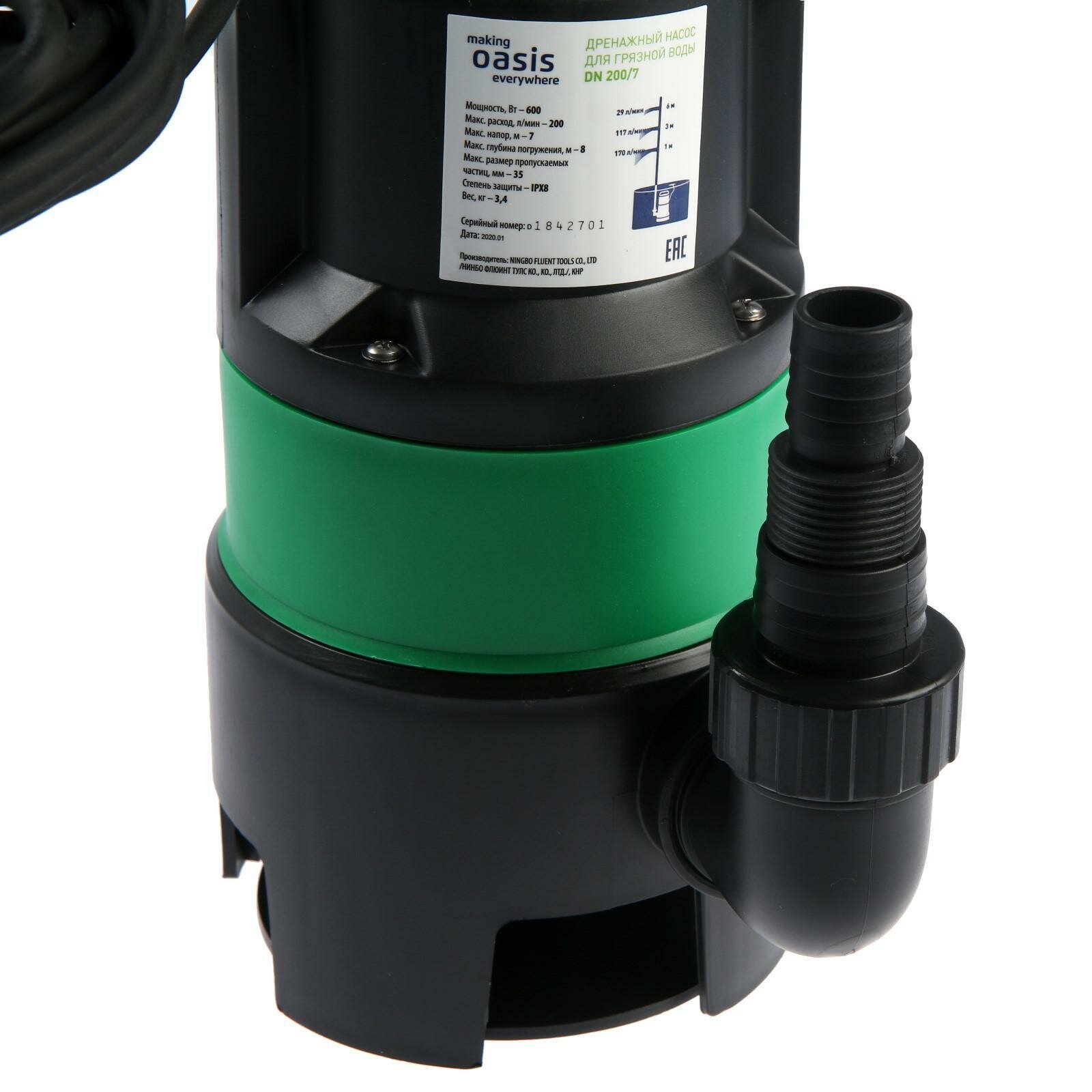 OASIS Насос дренажный Oasis DN 200/7, 600 Вт, напор 7 м, 200 л/мин