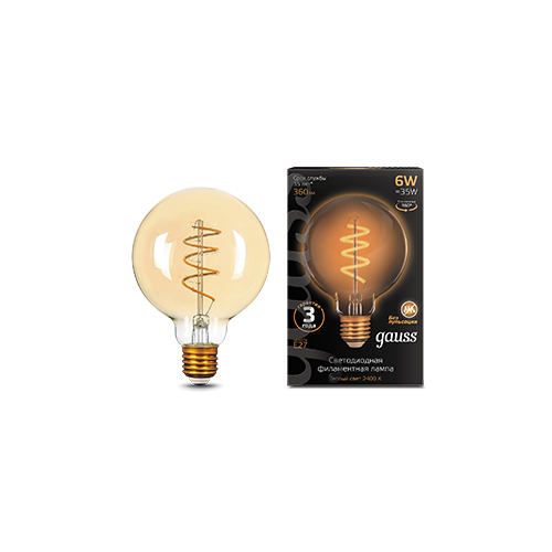 Gauss Лампа Filament G95 6W 360lm 2400К Е27 golden flexible LED