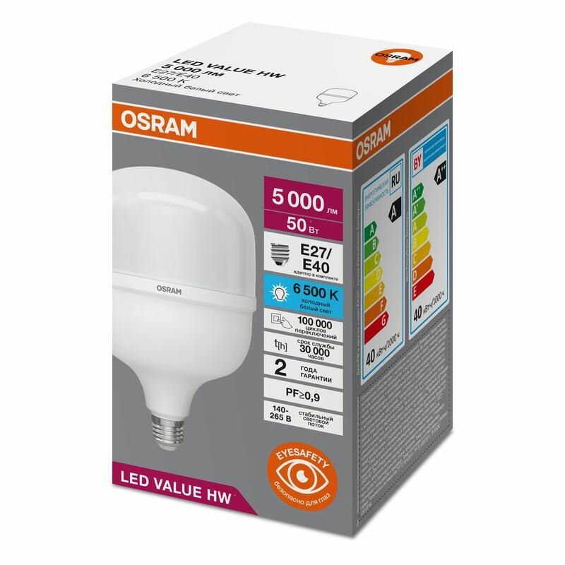Светодиодная лампа OSRAM LED HW 50W/865 230V E27/E40 5000lm 8X1 +адаптор