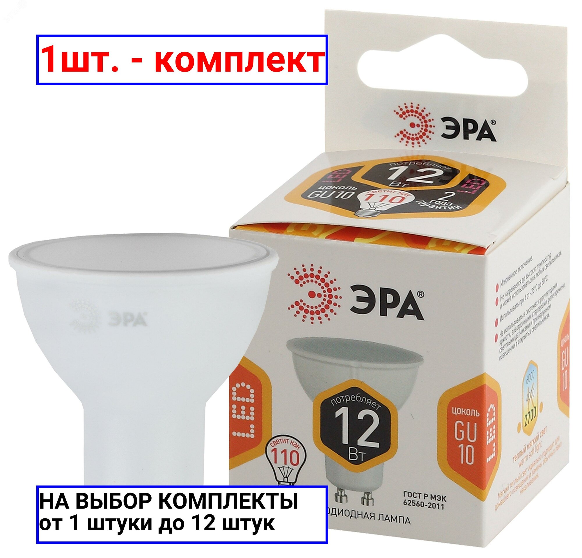 (12 шт.) Светодиодная лампочка ЭРА MR16 12Вт 170-265В 2700К GU10
