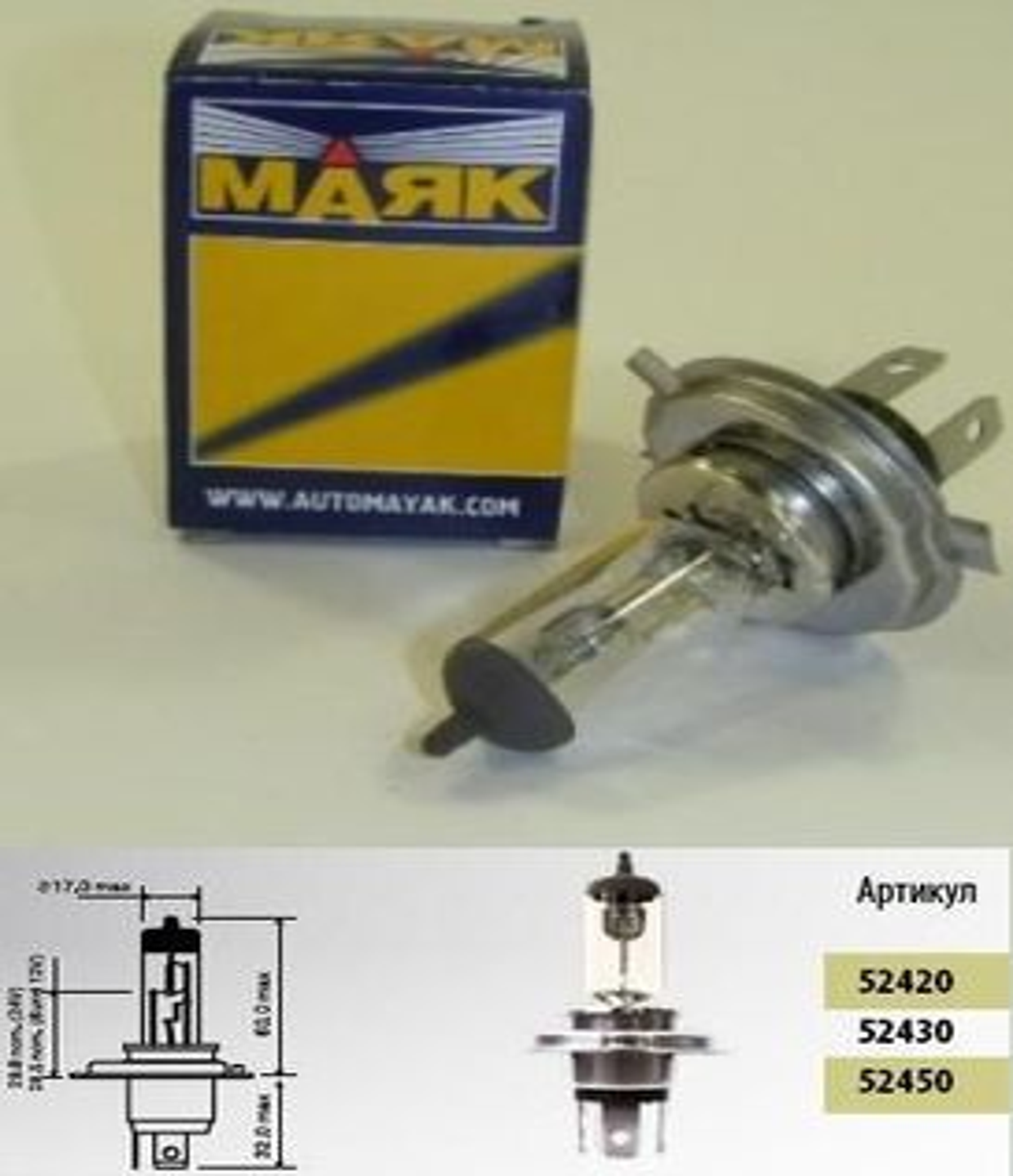 Лампа 12V H4 100/90W P43t Маяк 1 шт. картон 52450 MAYAK