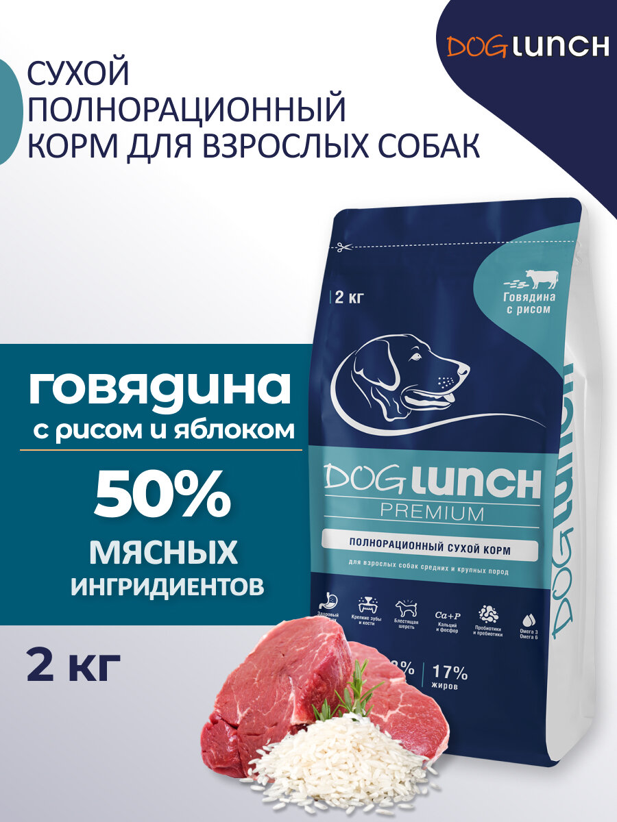 Dog Lunch Премиум сухой корм для собак средних и крупных пород с говядиной и рисом - 2 кг