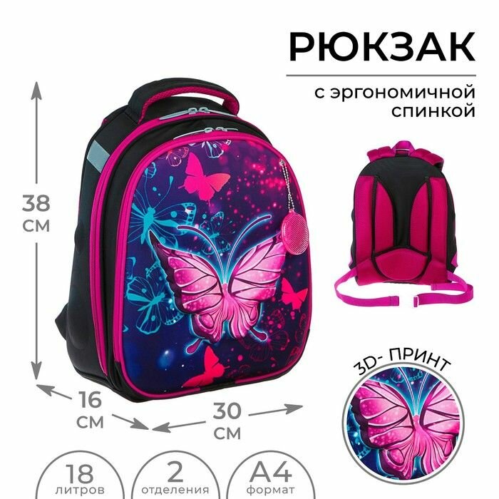Calligrata Рюкзак каркасный школьный Calligrata "Неоновая бабочка", 38 х 30 х 16 см, 3D-рисунок, фиолетовый