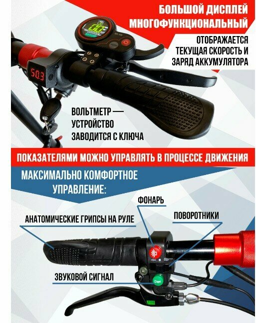 | Особенности электросамоката | дисплей / задний габарит/стоп-сигнал / индикатор заряда / индикатор скорости / круиз-контроль / ограничитель скорости / передняя фара (фонарь) / подсветка / привод задний / сиденье в комплекте |