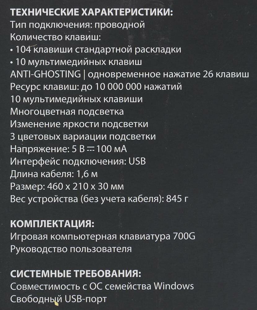 * При подключении в другой юсб порт пропало. ¯\_(ツ)_/¯ - - очень странный баг прерывающий сигнал от постоянно нажатой клавиши (вперёд , назад , вбок) в некоторых играх (*) - - * нет подсветки функциональных клавиш |