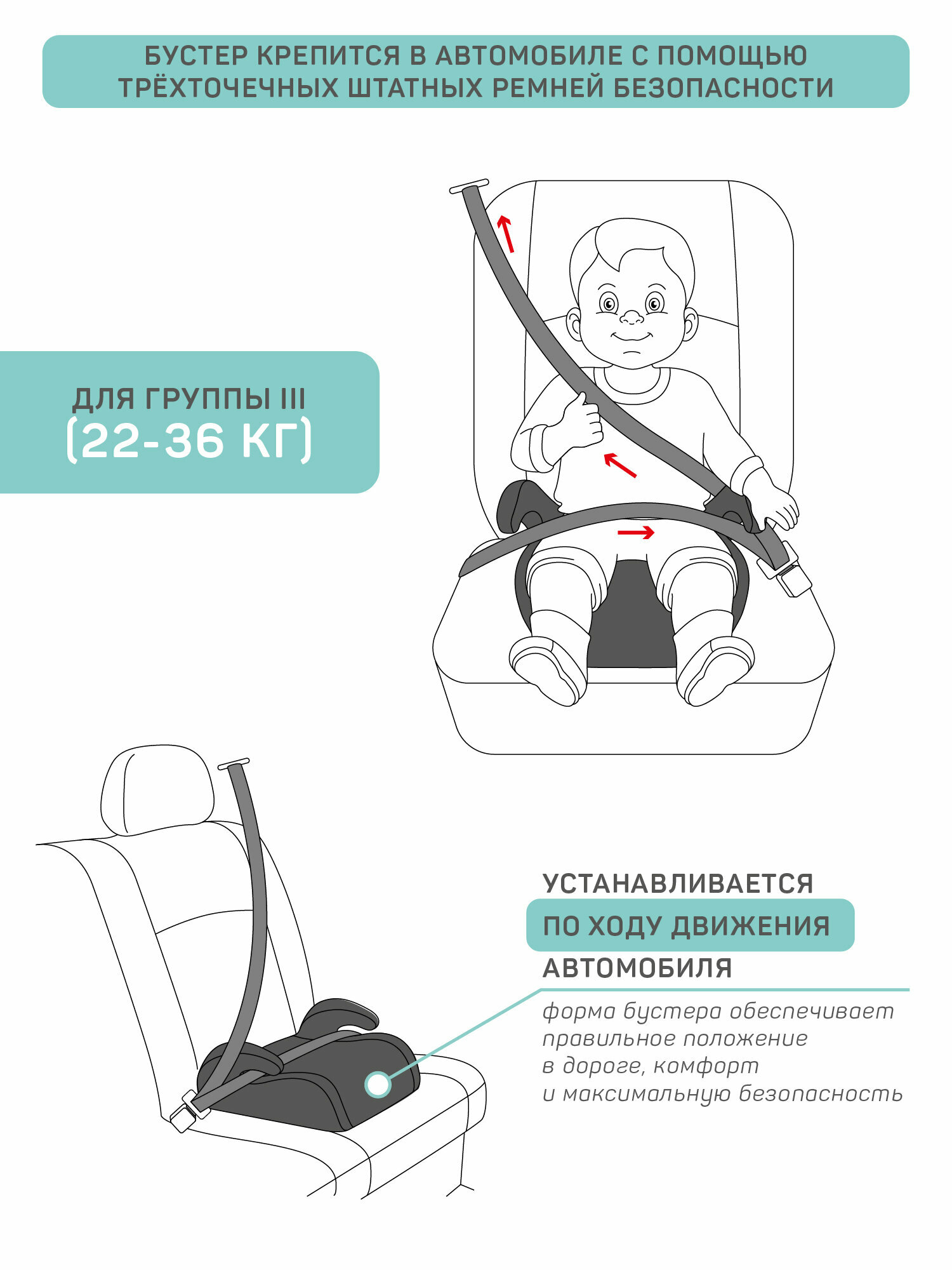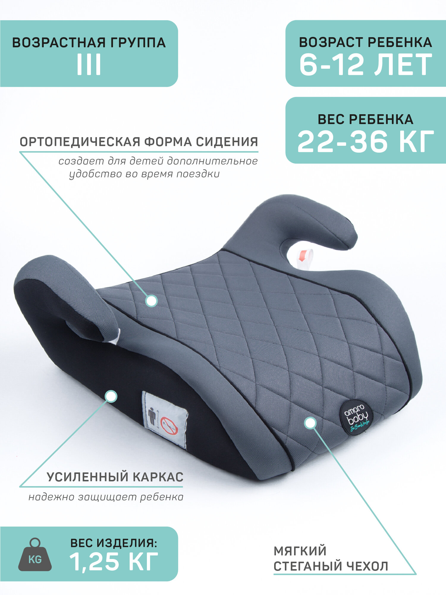 Автокресло детское (бустер) AMAROBABY Easy way, группа III, (бирюзовый)