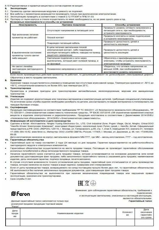 СохранитьСветодиодный прожектор LL-919 IP65 20W 6400K, FERON 29494 (1 шт.) интересное: