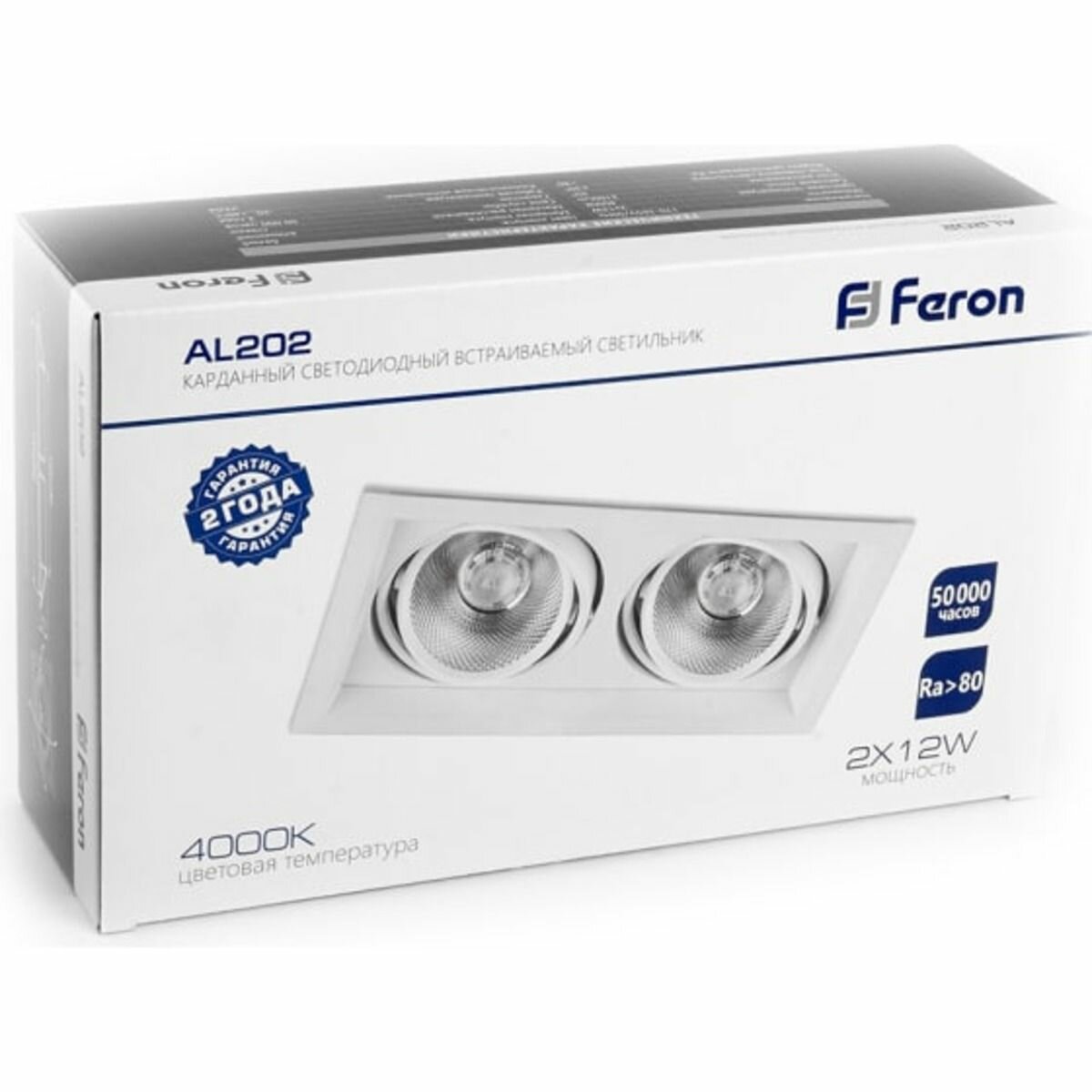 Встраиваемый карданный светильник Feron AL202 2x12W 4000K 35 градусов ,белый 29774