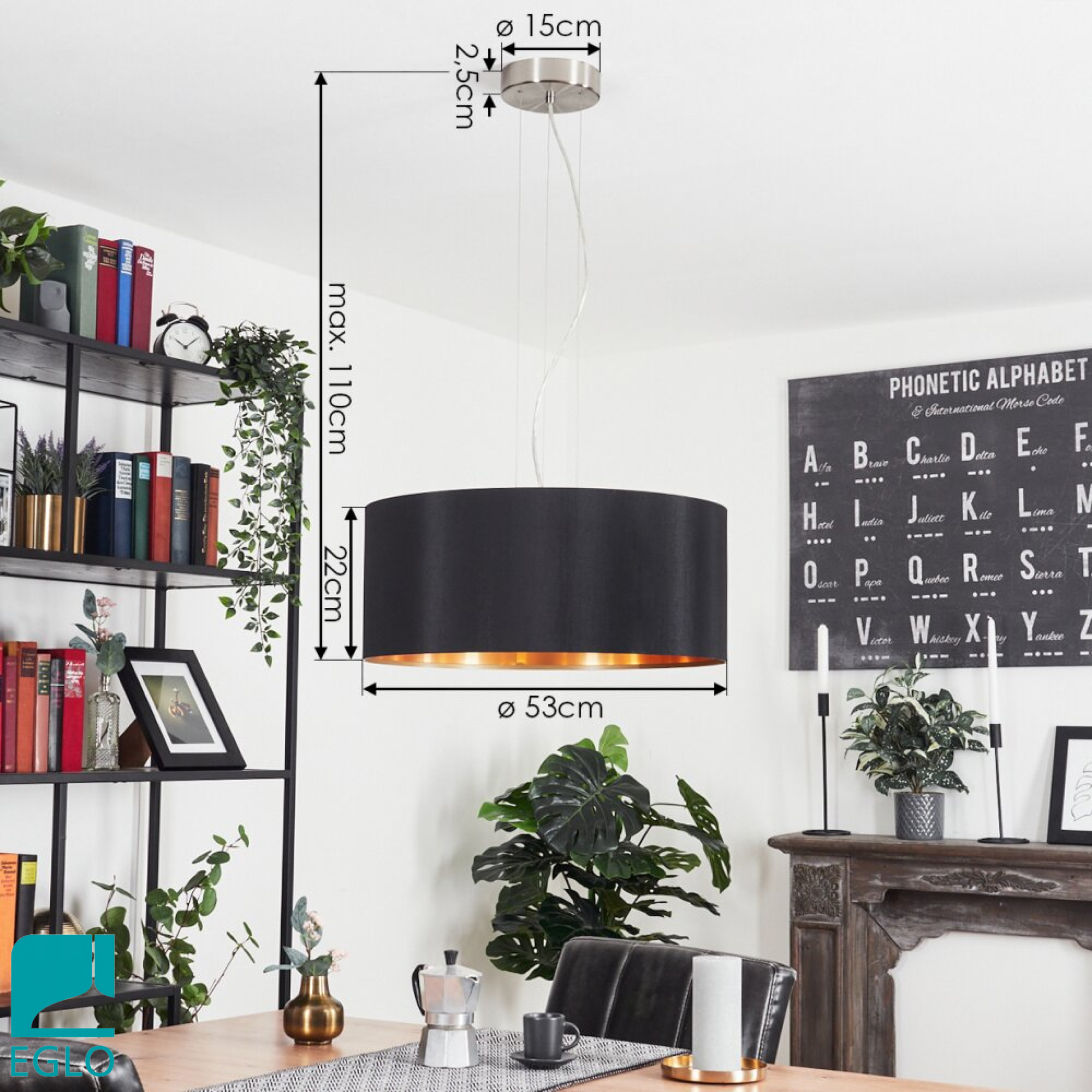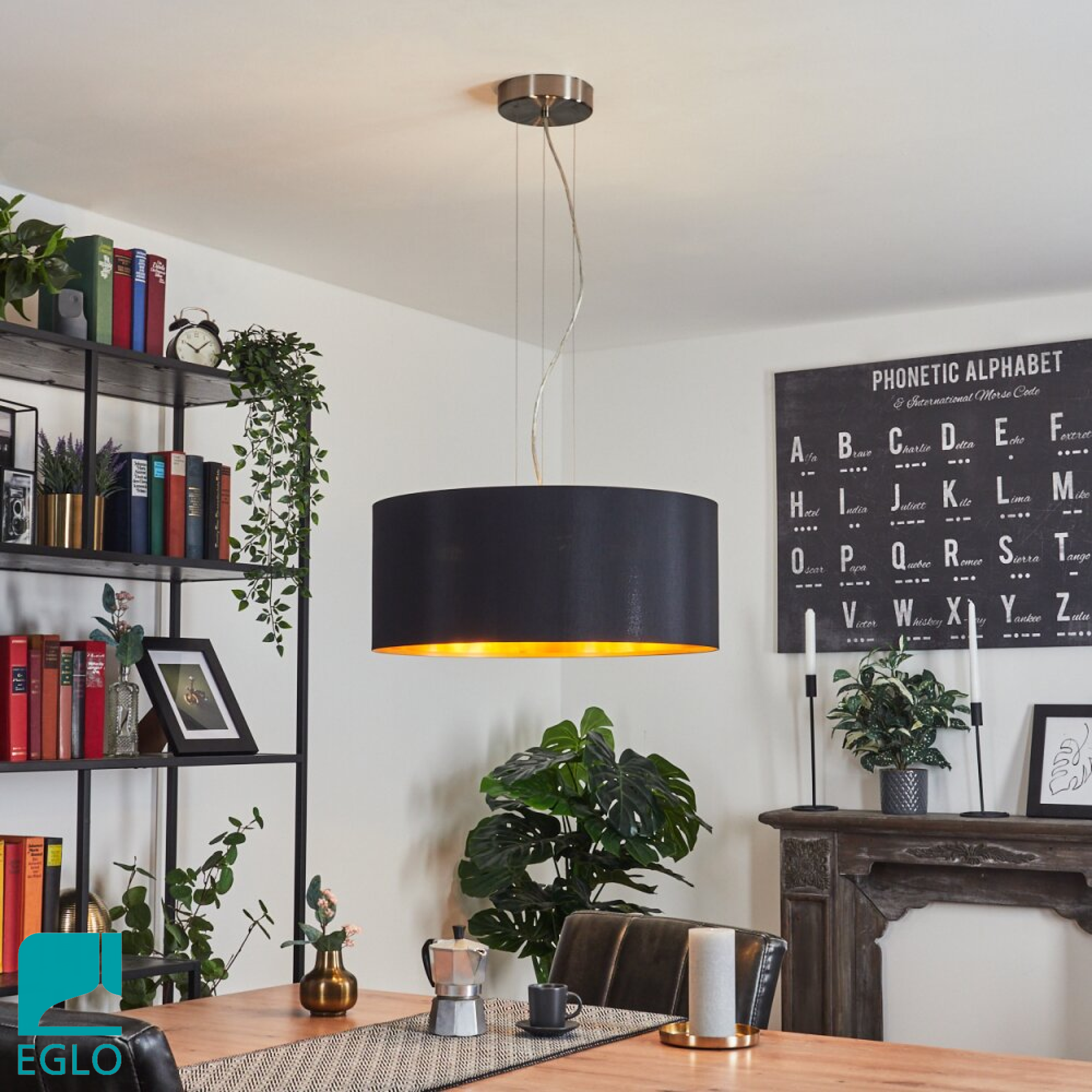 31605 Подвес MASERLO, 3х60W (E27), Ø530, никель мат./текстиль, черный, золотой, 31605 интересное: