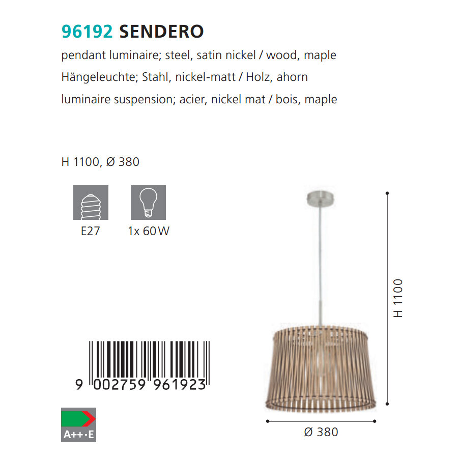 Ниже Вы можете прочитать отзывы на Подвесной светильник Sendero 96192, ознакомится с подробными характеристиками, посмотреть интересные обзоры и фотографии на Подвесной светильник Sendero 96192.