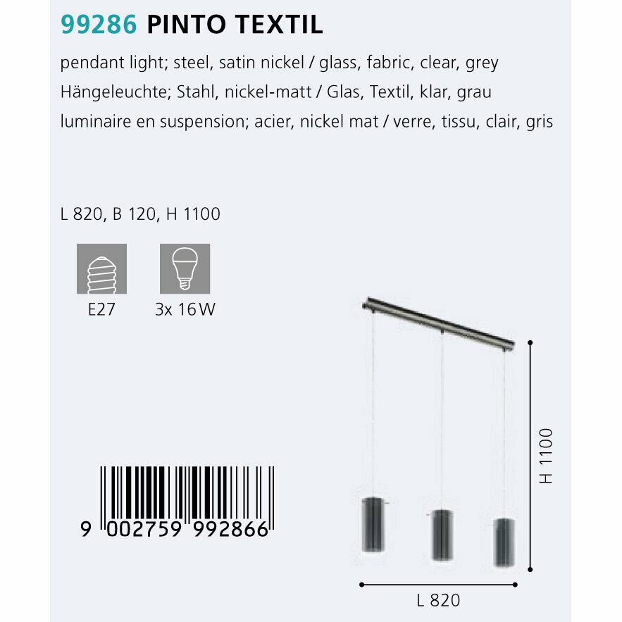 Eglo 99286 Подвес PINTO TEXTIL, 3х16W (E27), L820, H1100, сталь, ник. мат./стекло, текстиль, прозр., серы 99286