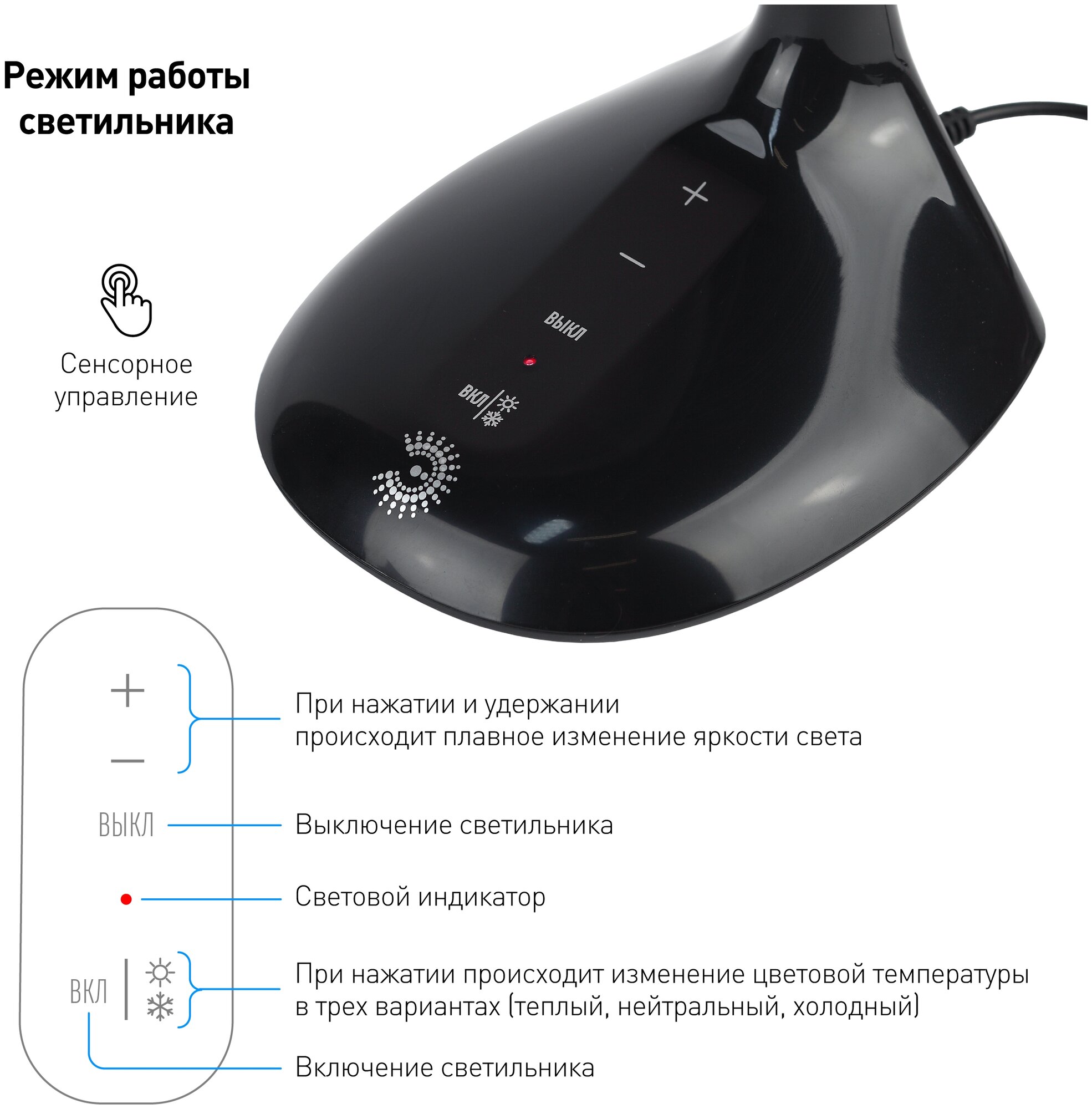Офисная настольная лампа светодиодная с диммером и выключателем регулировкой яркости NLED-452-9W-BK (ЭРА)