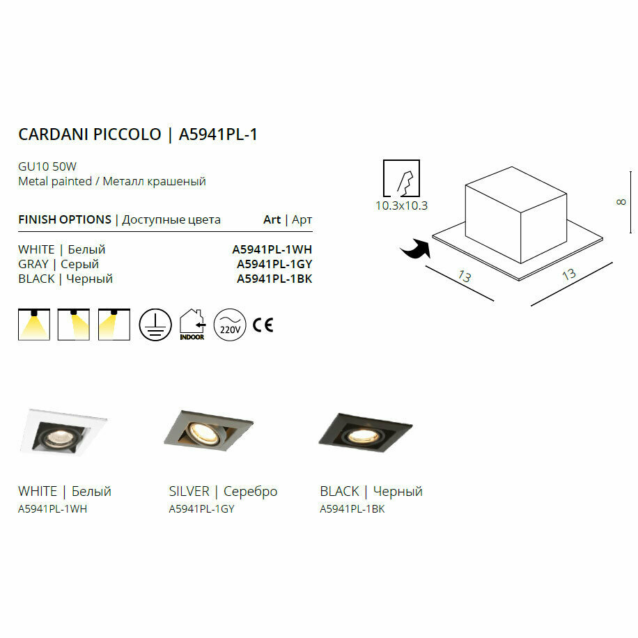 Светильник встраиваемый CARDANI PICCOLO A5941PL-1GY