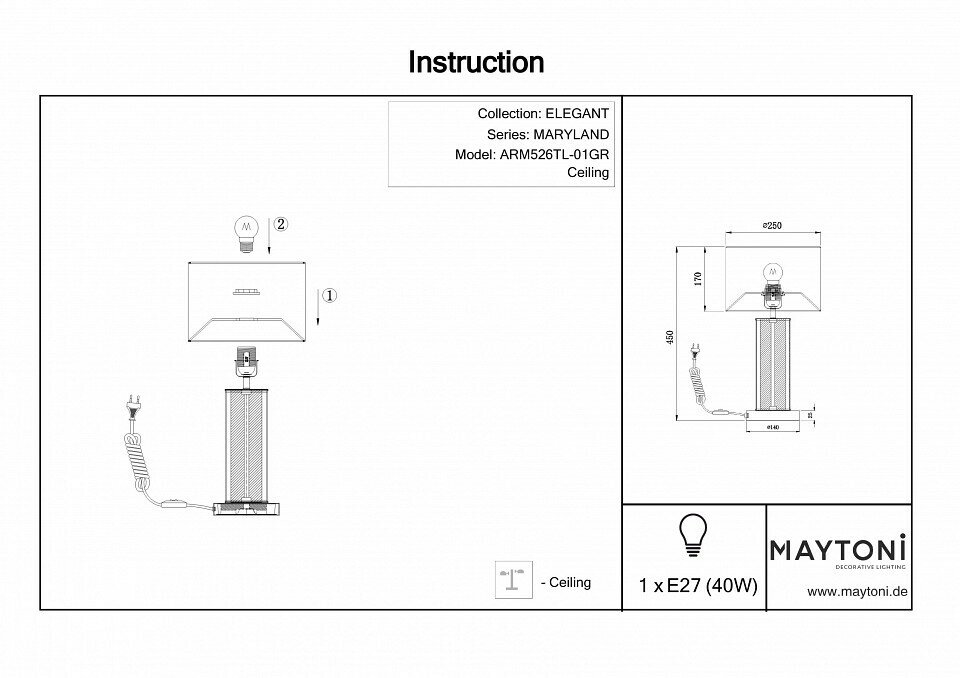 Настольная лампа декоративная Maytoni Maryland ARM526TL-01GR интересное:
