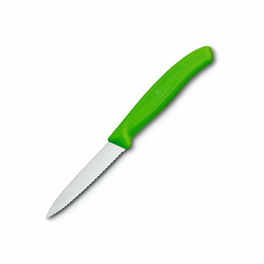 Нож для овощей VICTORINOX Swiss Classic, лезвие 8 см с волнистой заточкой и заострённым кончиком, зелёный 6.7636.L114