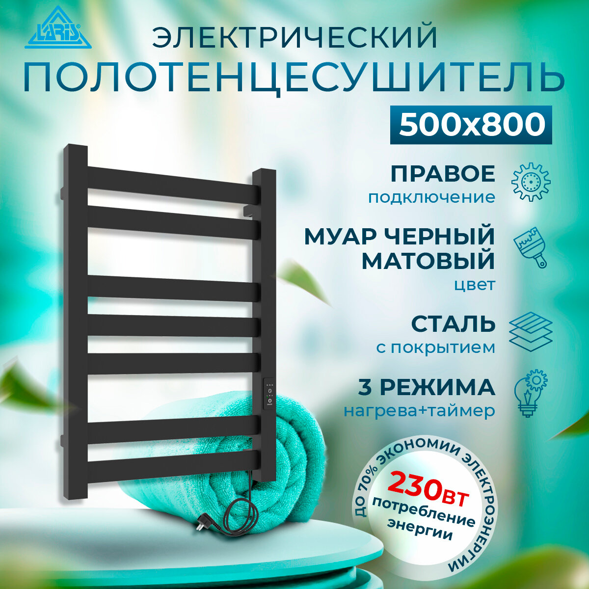 Полотенцесушитель электрический Laris Гефест ЧКЧ П7 500*800, черный муар, правое подключение (73207617)