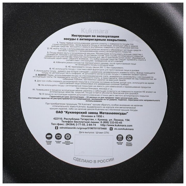 Сковорода KUKMARA "Традиция", 26x6 см, стеклянная крышка