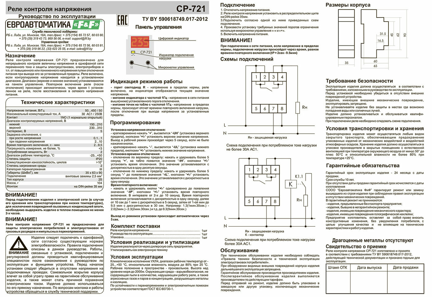 СохранитьРеле контроля напряжения 1 шт CP-721 30А 220В Евроавтоматика F&F однофазное интересное: