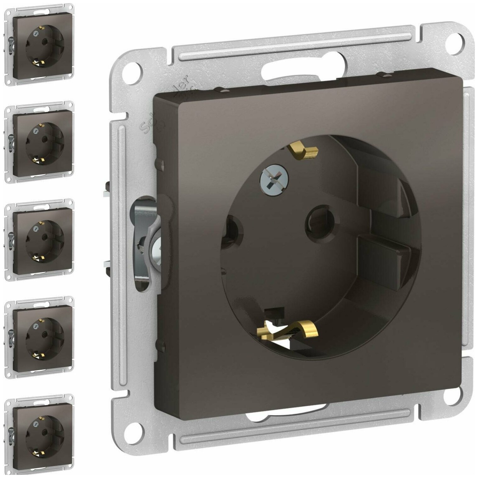 5 шт. Systeme Electric AtlasDesign Мокко, Розетка с заземлением со шторками, 16А, механизм, ATN000645