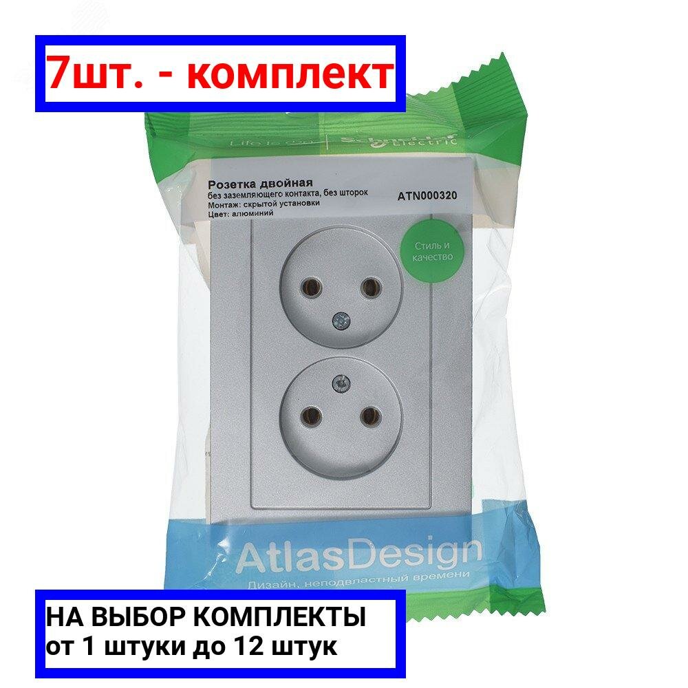 Купить 7шт. - Розетка ATLASDESIGN двойная без заземления 16А в сборе алюминий / Systeme Electric; арт. ATN000320; оригинал / - комплект 7шт
