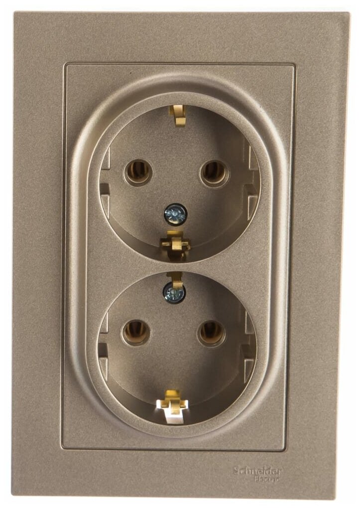 Розетка двойная шампань, с заземлением,16А, в сборе, Schneider Electric AtlasDesign (комплект 4шт)